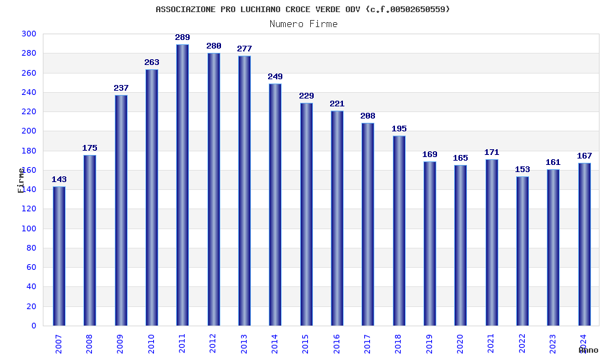 Anno Firme Importi Media Naz. Reg. Prov. Comu.