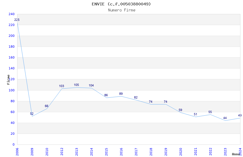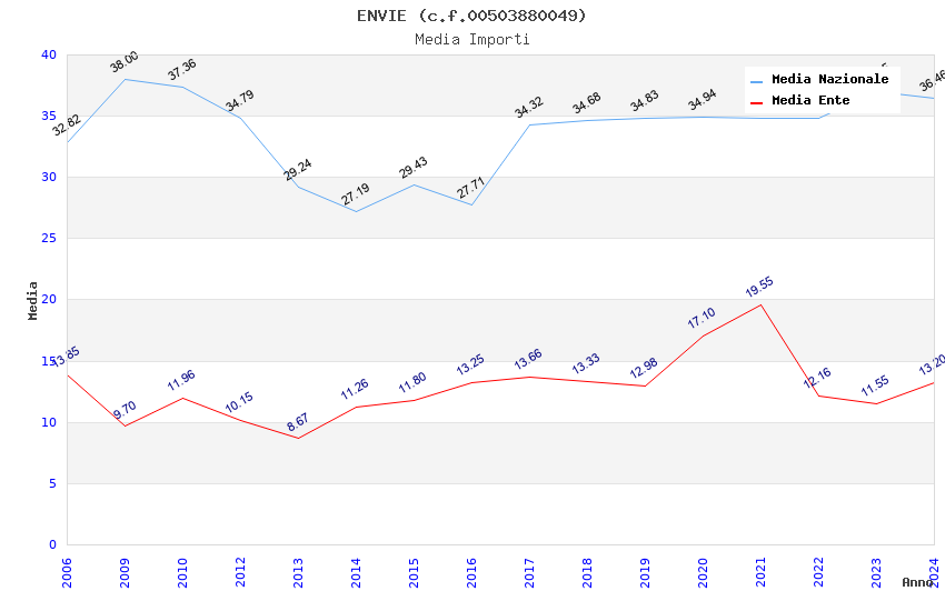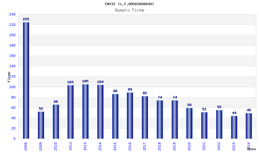 | Anno | Firme | Importi | Media | Naz. | Reg. | Prov. | Comu. |