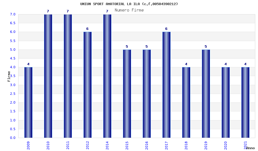 | Anno | Firme | Importi | Media | Naz. | Reg. | Prov. | Comu. |