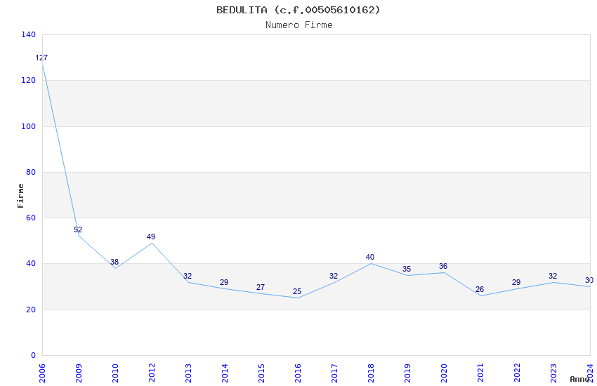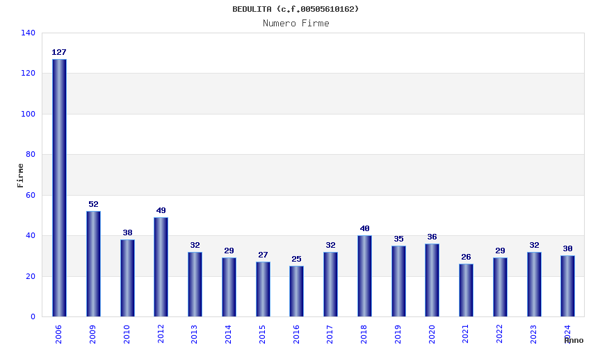 | Anno | Firme | Importi | Media | Naz. | Reg. | Prov. | Comu. |