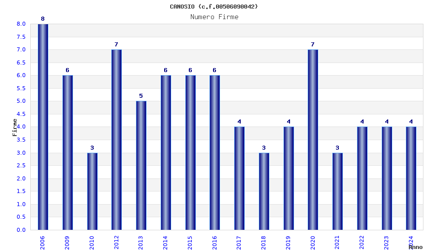 | Anno | Firme | Importi | Media | Naz. | Reg. | Prov. | Comu. |
