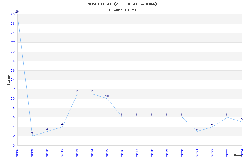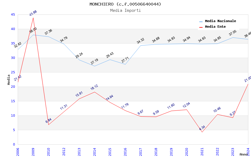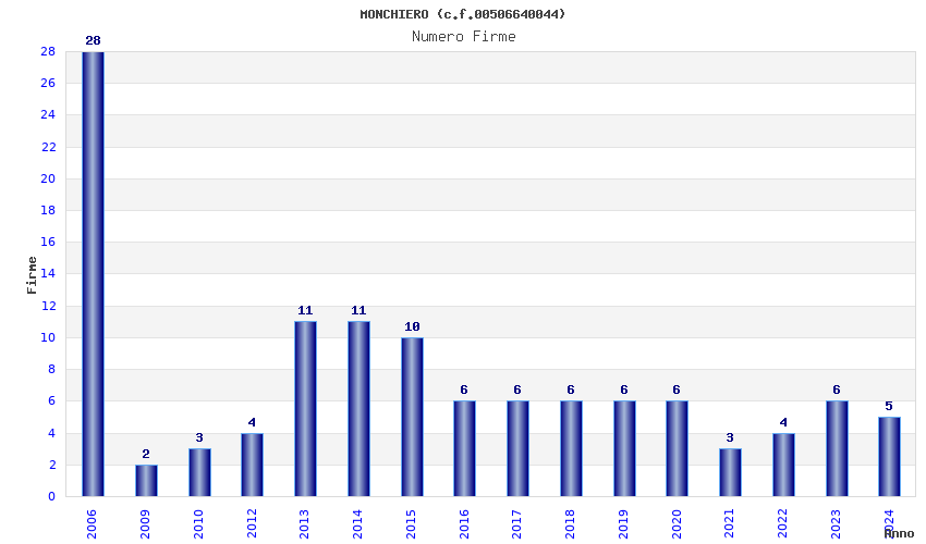 | Anno | Firme | Importi | Media | Naz. | Reg. | Prov. | Comu. |