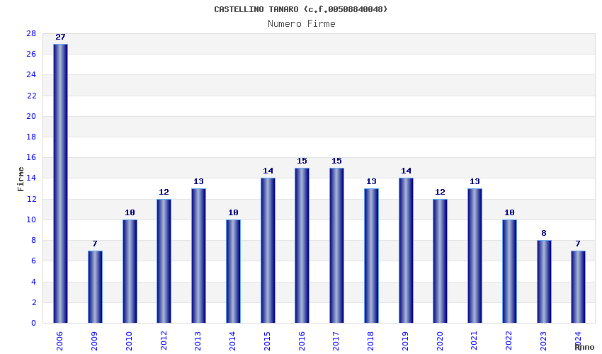 | Anno | Firme | Importi | Media | Naz. | Reg. | Prov. | Comu. |