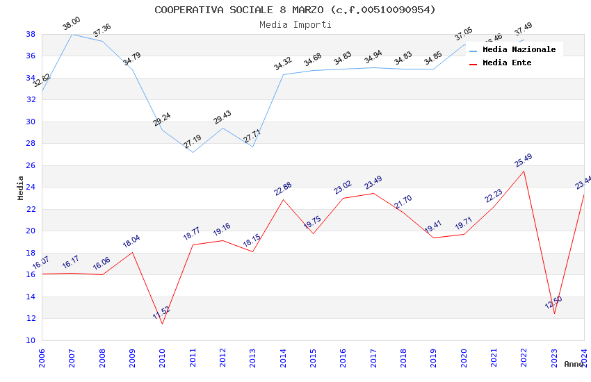| Anno | Firme | Importi | Media | Naz. | Reg. | Prov. | Comu. |
