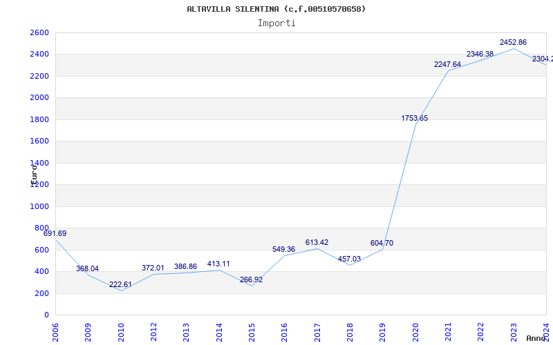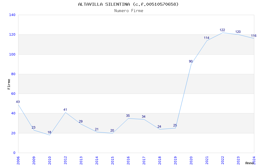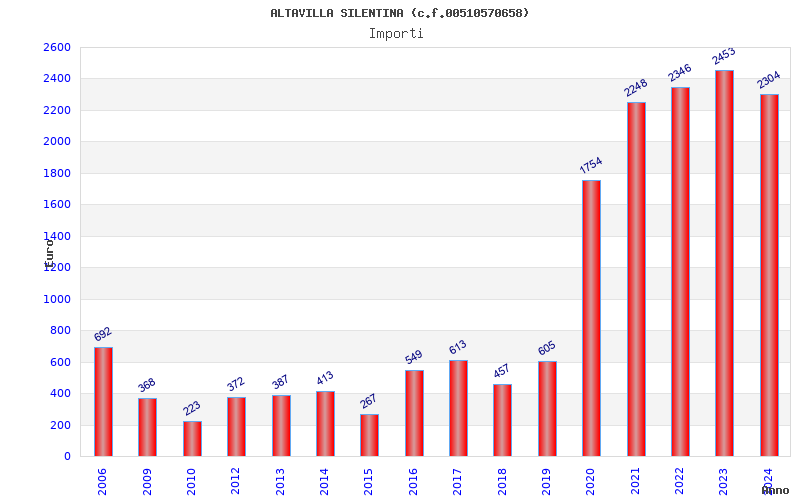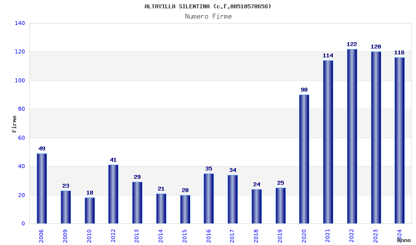 | Anno | Firme | Importi | Media | Naz. | Reg. | Prov. | Comu. |