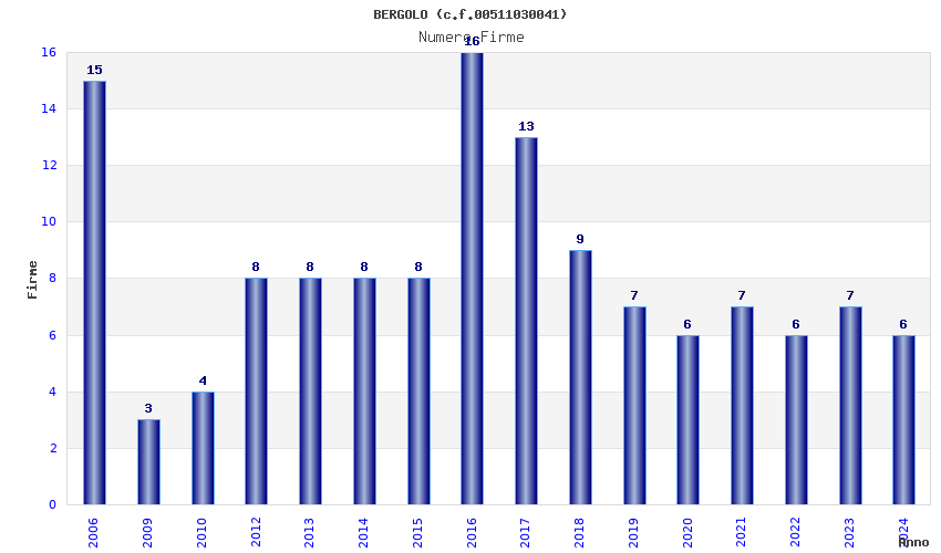 | Anno | Firme | Importi | Media | Naz. | Reg. | Prov. | Comu. |