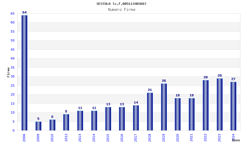 | Anno | Firme | Importi | Media | Naz. | Reg. | Prov. | Comu. |