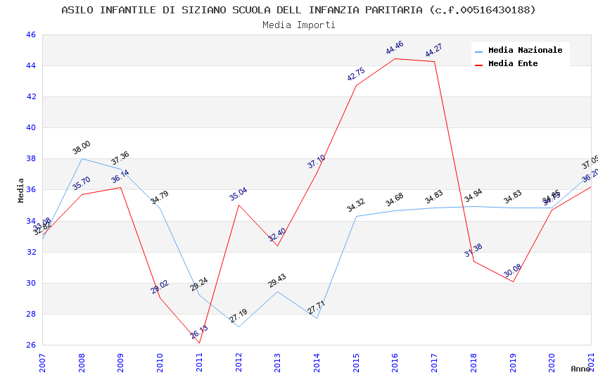 | Anno | Firme | Importi | Media | Naz. | Reg. | Prov. | Comu. |