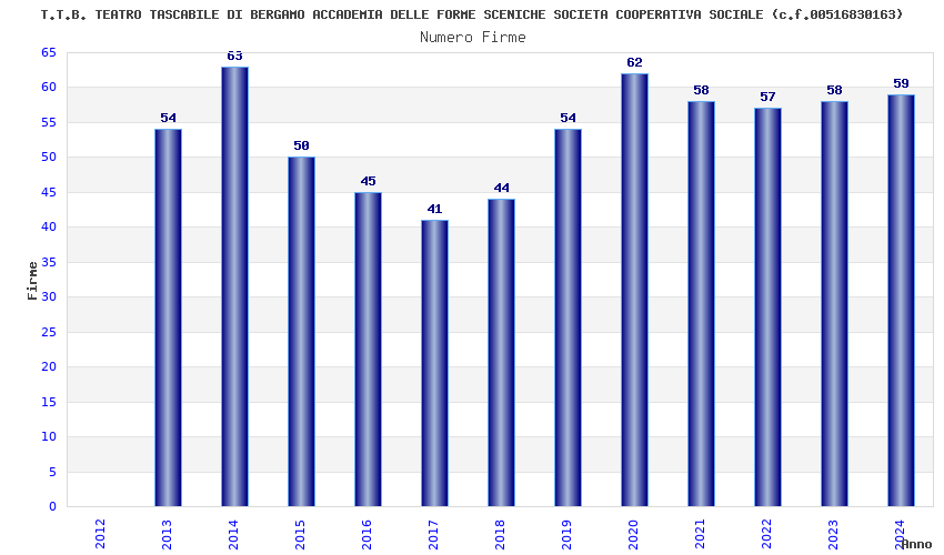 | Anno | Firme | Importi | Media | Naz. | Reg. | Prov. | Comu. |