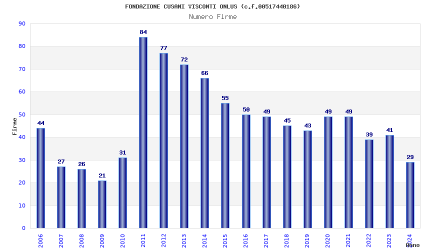 | Anno | Firme | Importi | Media | Naz. | Reg. | Prov. | Comu. |