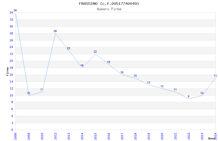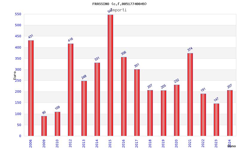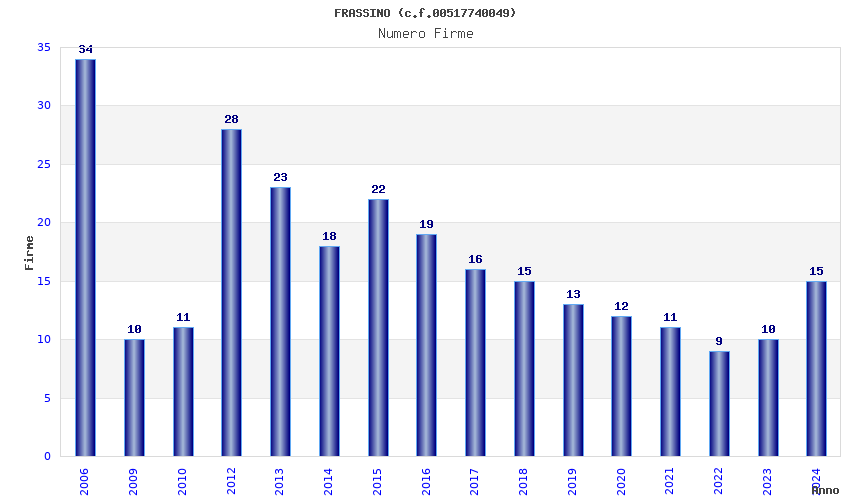| Anno | Firme | Importi | Media | Naz. | Reg. | Prov. | Comu. |