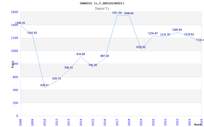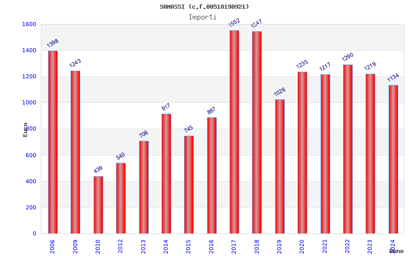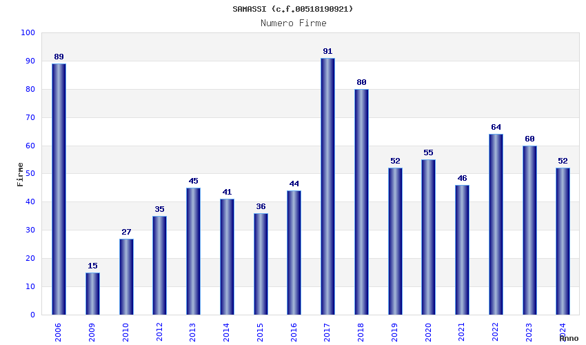 | Anno | Firme | Importi | Media | Naz. | Reg. | Prov. | Comu. |