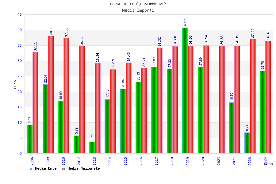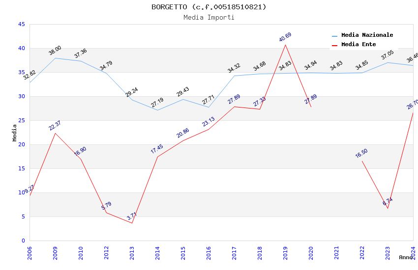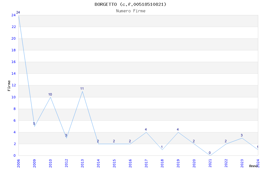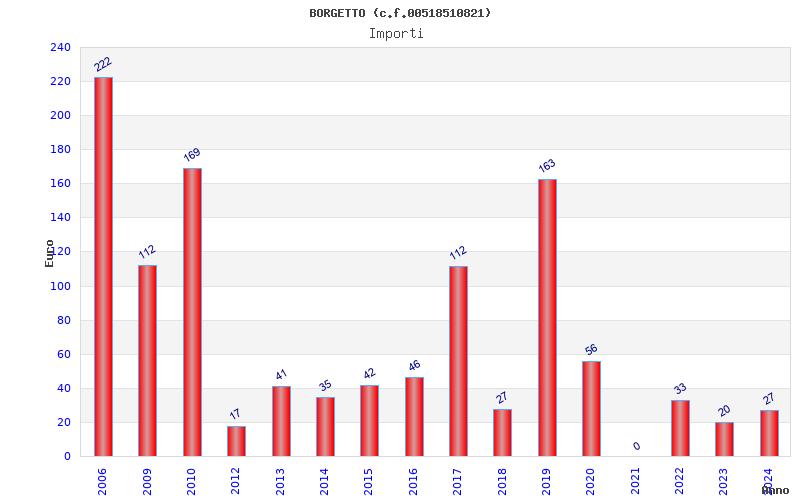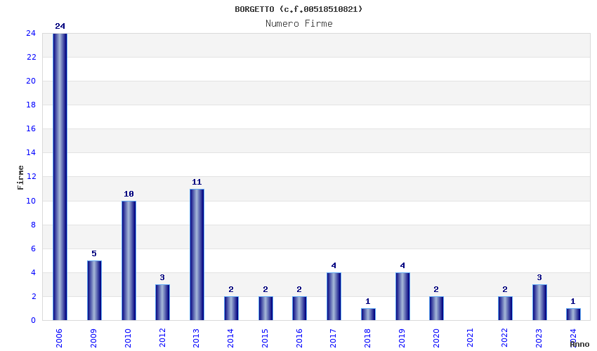 | Anno | Firme | Importi | Media | Naz. | Reg. | Prov. | Comu. |