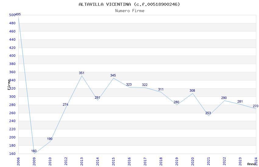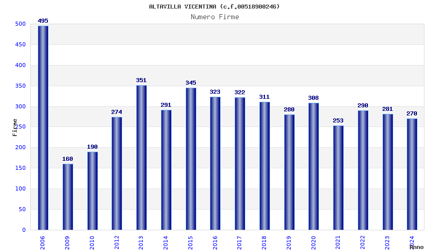 | Anno | Firme | Importi | Media | Naz. | Reg. | Prov. | Comu. |