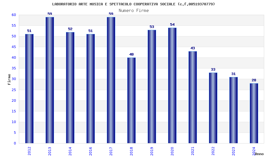 | Anno | Firme | Importi | Media | Naz. | Reg. | Prov. | Comu. |