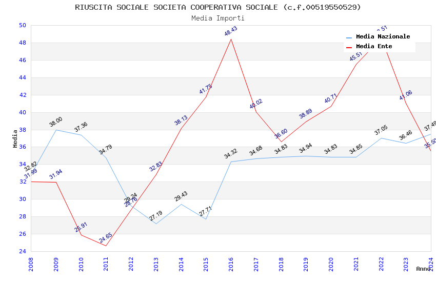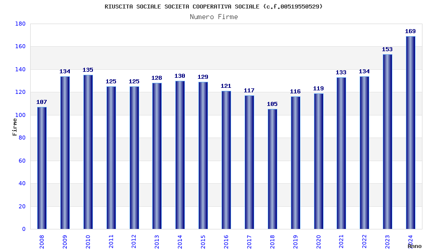 | Anno | Firme | Importi | Media | Naz. | Reg. | Prov. | Comu. |