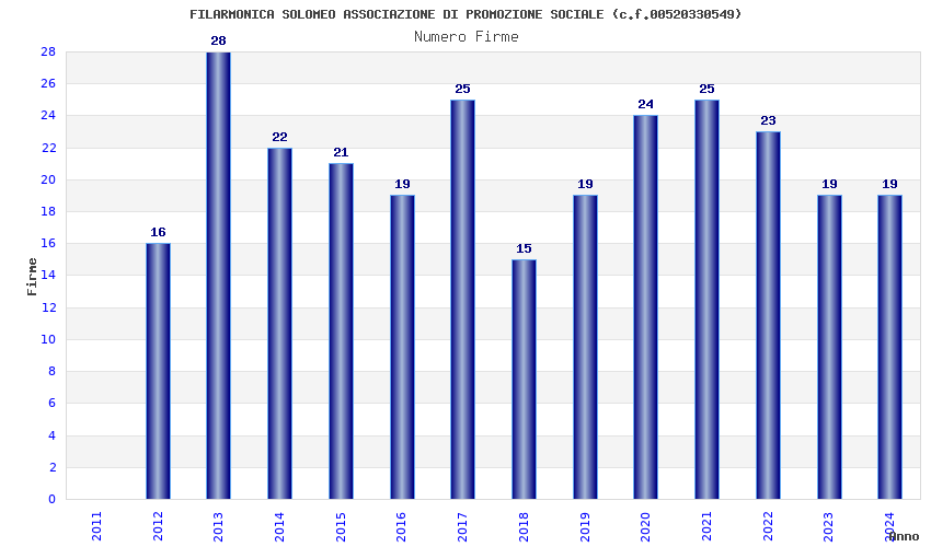 | Anno | Firme | Importi | Media | Naz. | Reg. | Prov. | Comu. |