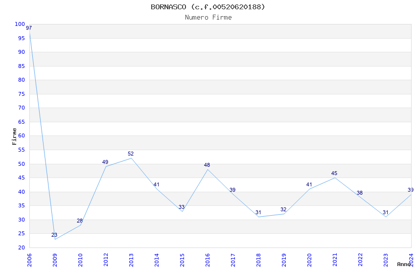 | 2006 | 97 | 2.310,67 | 23,82 | 13.946 | 3.648 | 160 | 1 |
