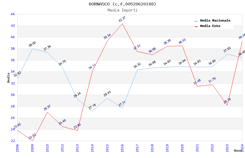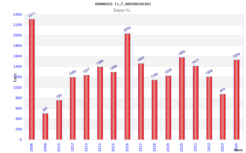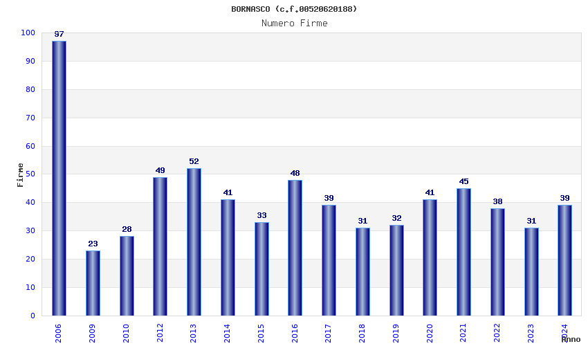 | Anno | Firme | Importi | Media | Naz. | Reg. | Prov. | Comu. |