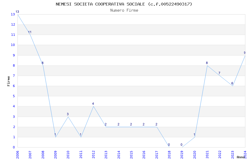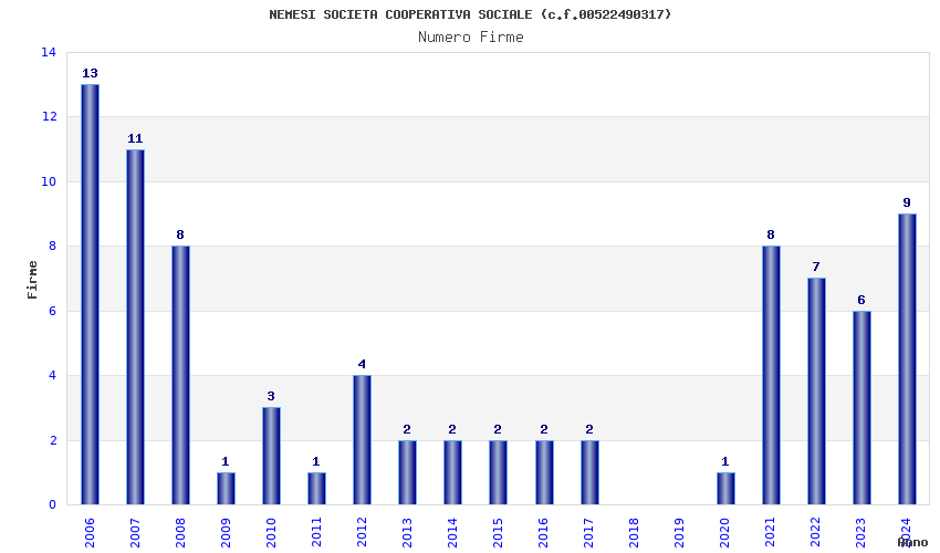 | Anno | Firme | Importi | Media | Naz. | Reg. | Prov. | Comu. |