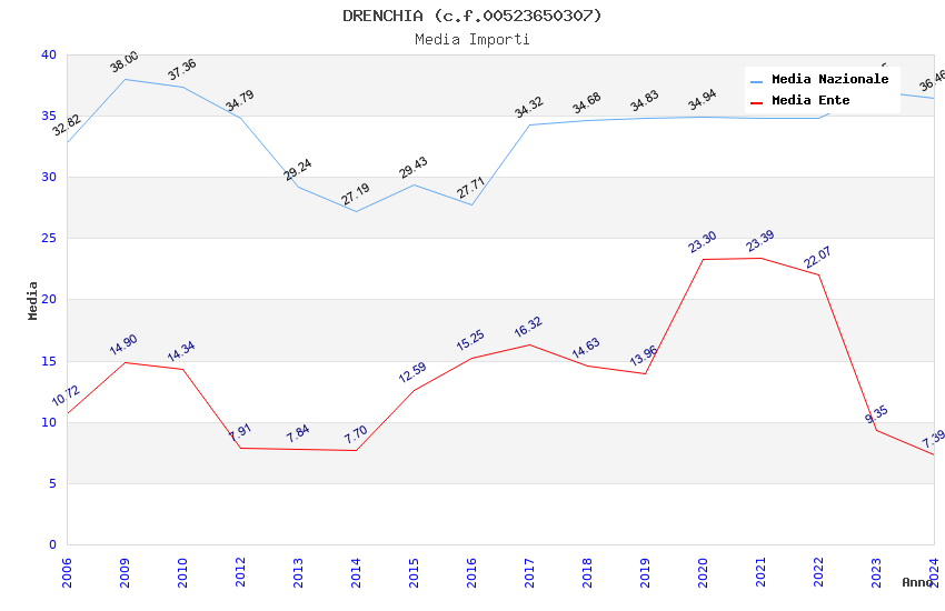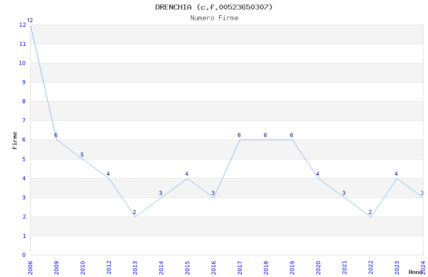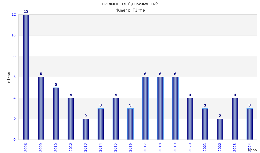 | Anno | Firme | Importi | Media | Naz. | Reg. | Prov. | Comu. |