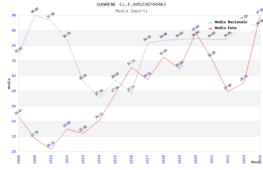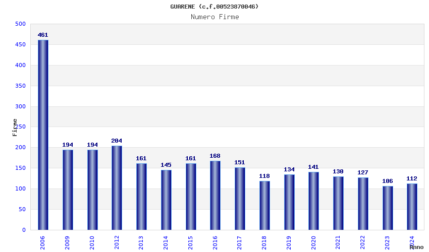 | Anno | Firme | Importi | Media | Naz. | Reg. | Prov. | Comu. |