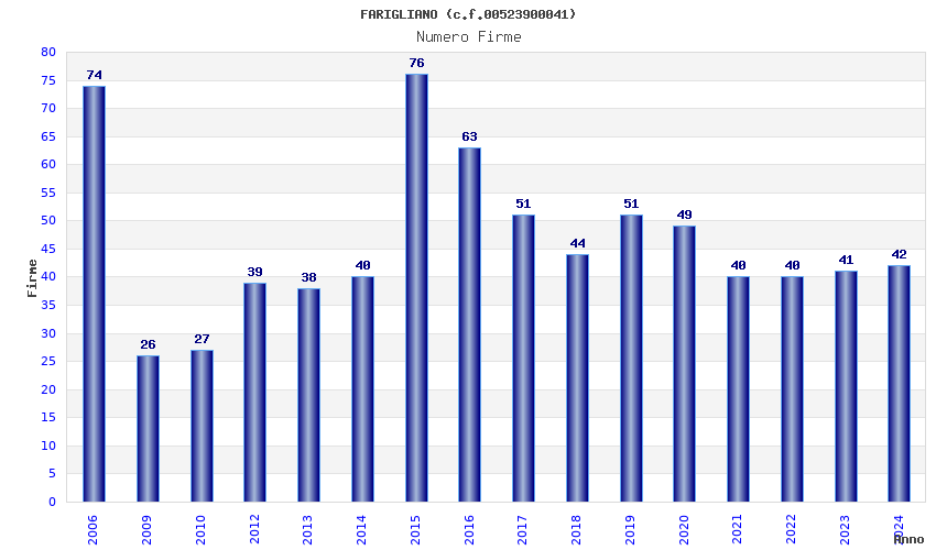 Anno Firme Importi Media Naz. Reg. Prov. Comu.