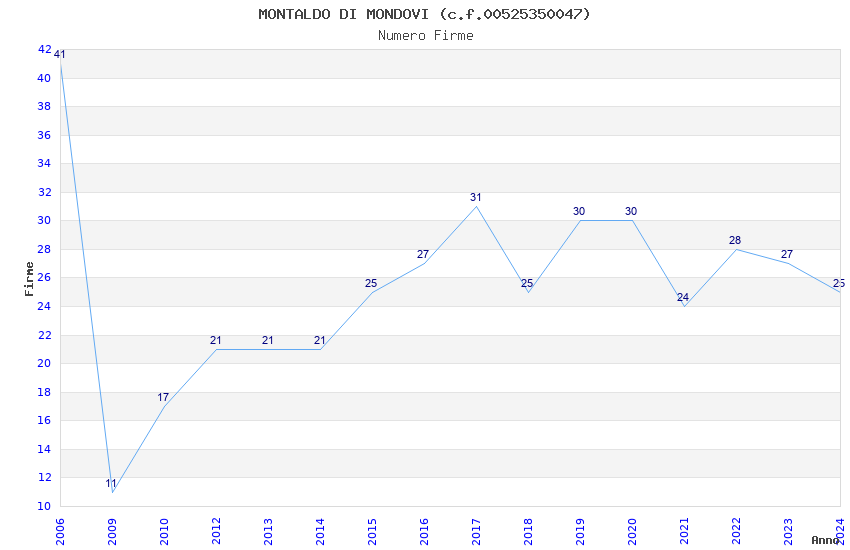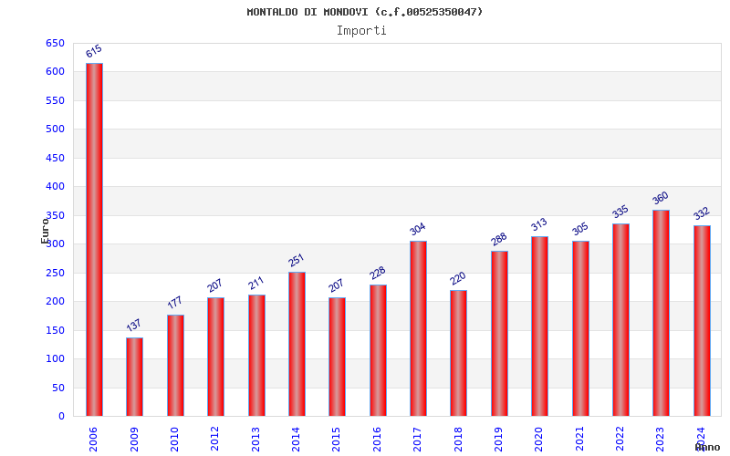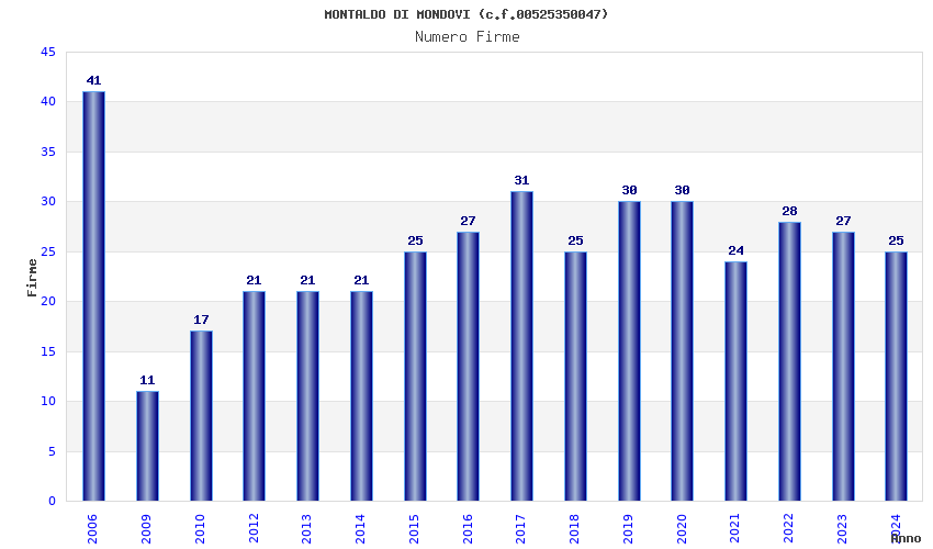 | Anno | Firme | Importi | Media | Naz. | Reg. | Prov. | Comu. |