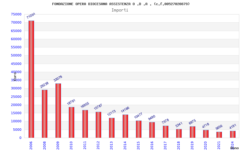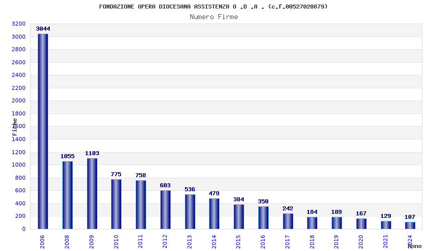 | Anno | Firme | Importi | Media | Naz. | Reg. | Prov. | Comu. |