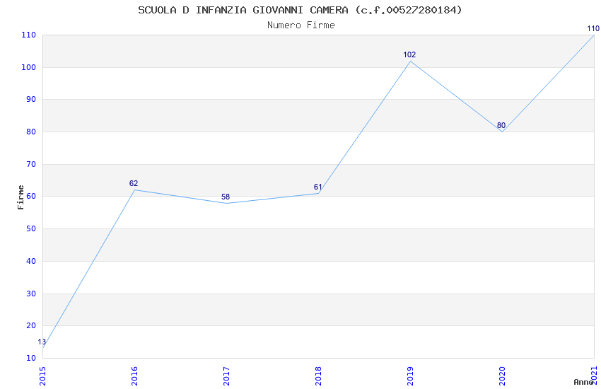 | Anno | Firme | Importi | Media | Naz. | Reg. | Prov. | Comu. |