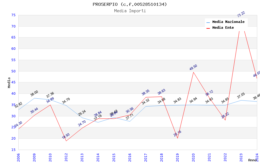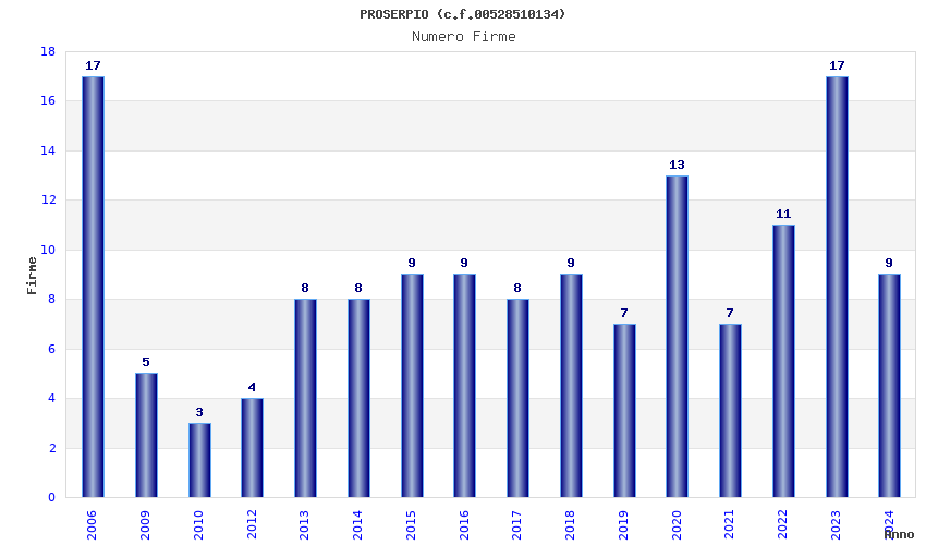 | Anno | Firme | Importi | Media | Naz. | Reg. | Prov. | Comu. |