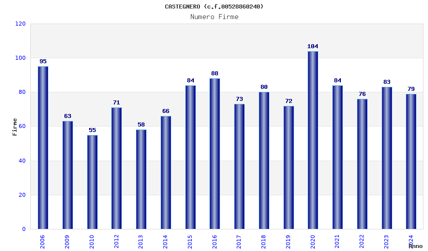| Anno | Firme | Importi | Media | Naz. | Reg. | Prov. | Comu. |