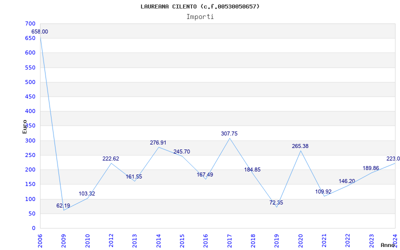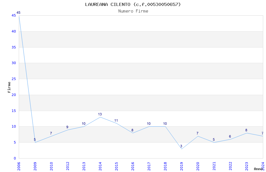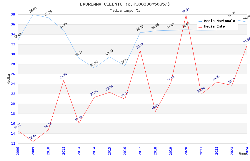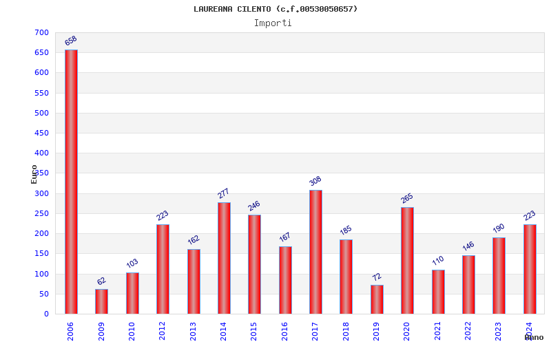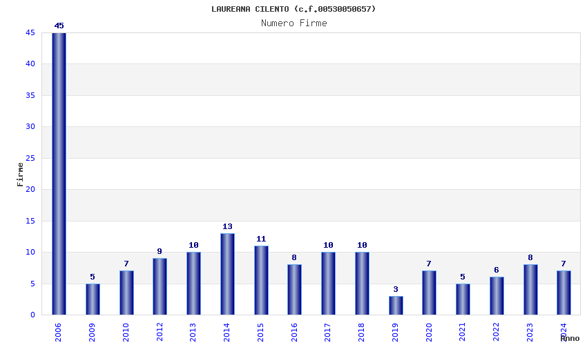 | Anno | Firme | Importi | Media | Naz. | Reg. | Prov. | Comu. |