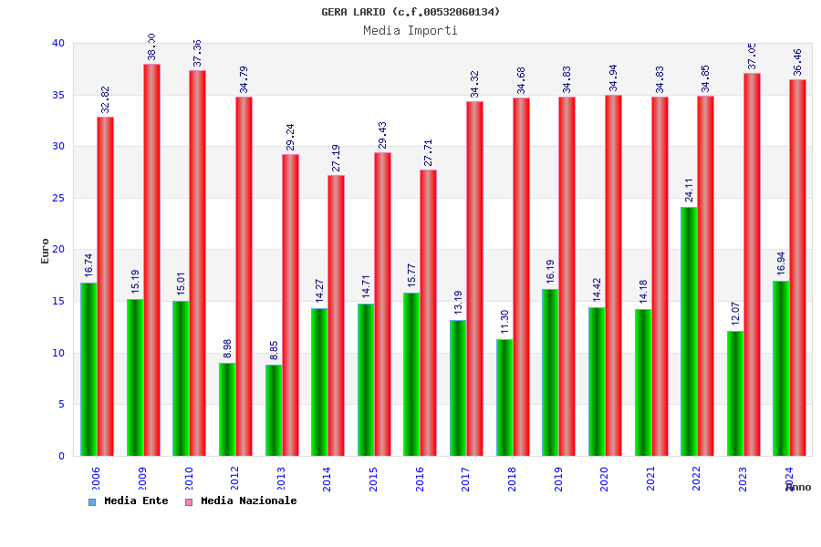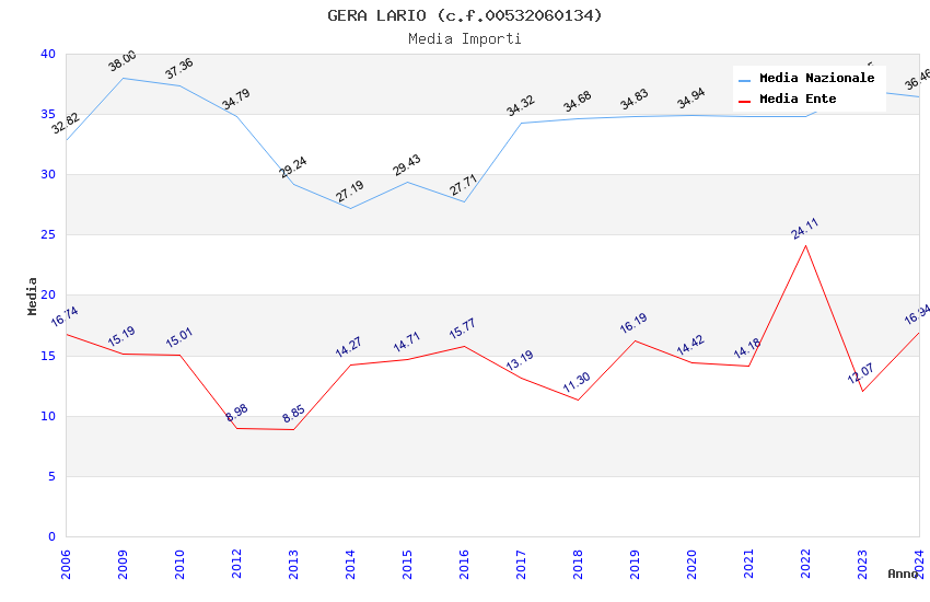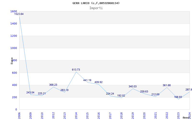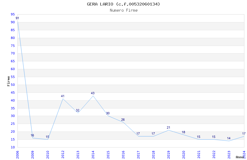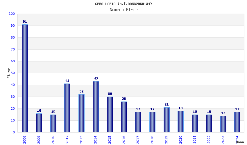 | Anno | Firme | Importi | Media | Naz. | Reg. | Prov. | Comu. |