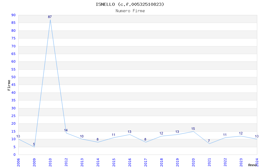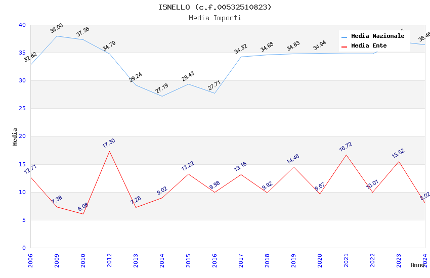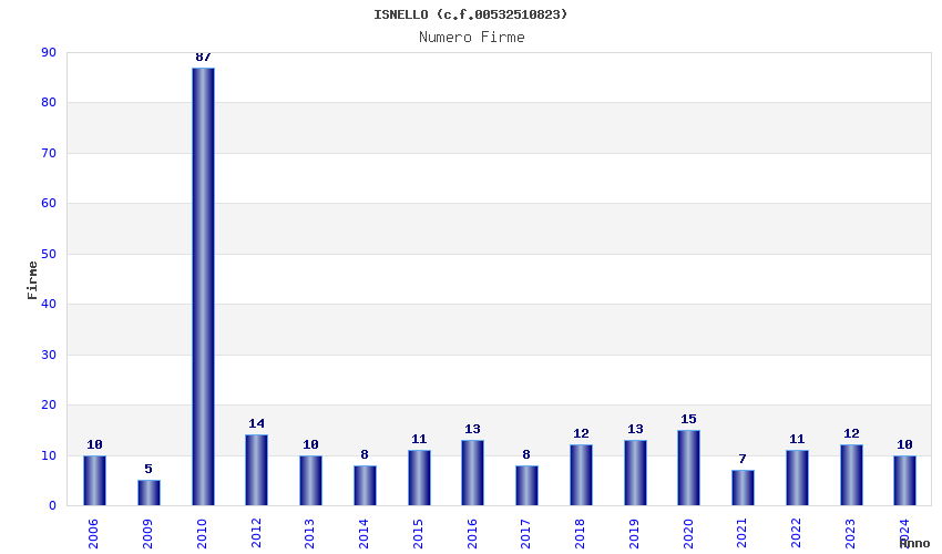 | Anno | Firme | Importi | Media | Naz. | Reg. | Prov. | Comu. |