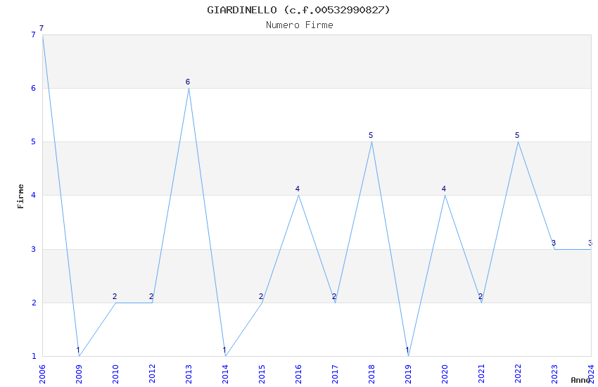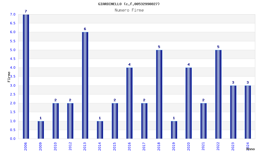 | Anno | Firme | Importi | Media | Naz. | Reg. | Prov. | Comu. |