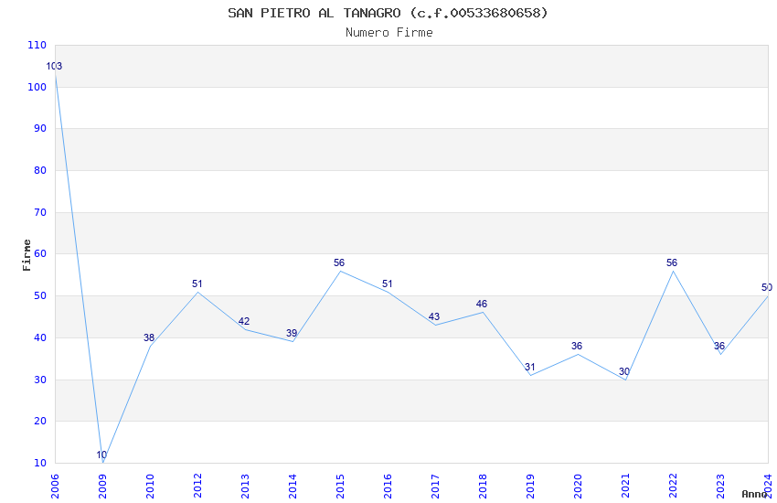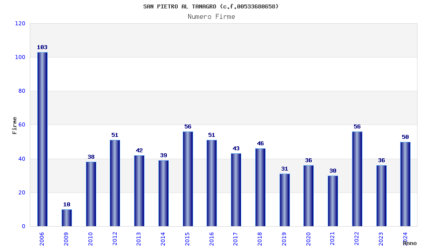| Anno | Firme | Importi | Media | Naz. | Reg. | Prov. | Comu. |