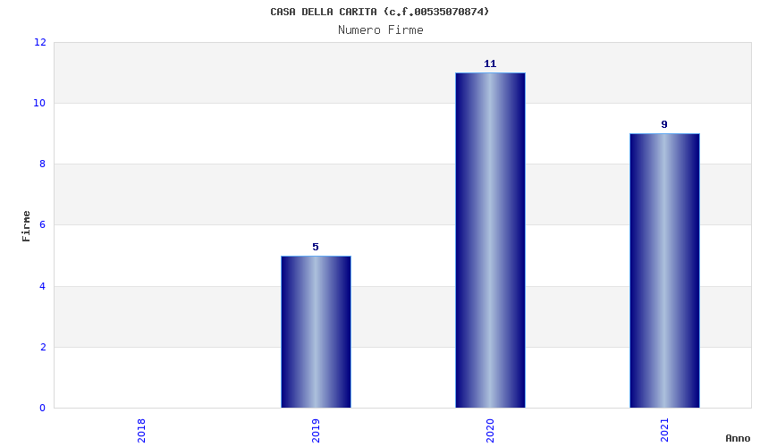 | Anno | Firme | Importi | Media | Naz. | Reg. | Prov. | Comu. |