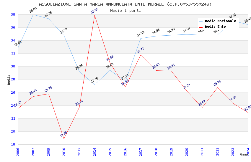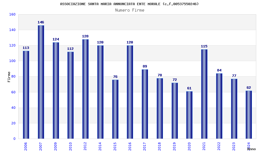 | Anno | Firme | Importi | Media | Naz. | Reg. | Prov. | Comu. |