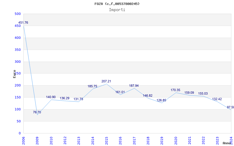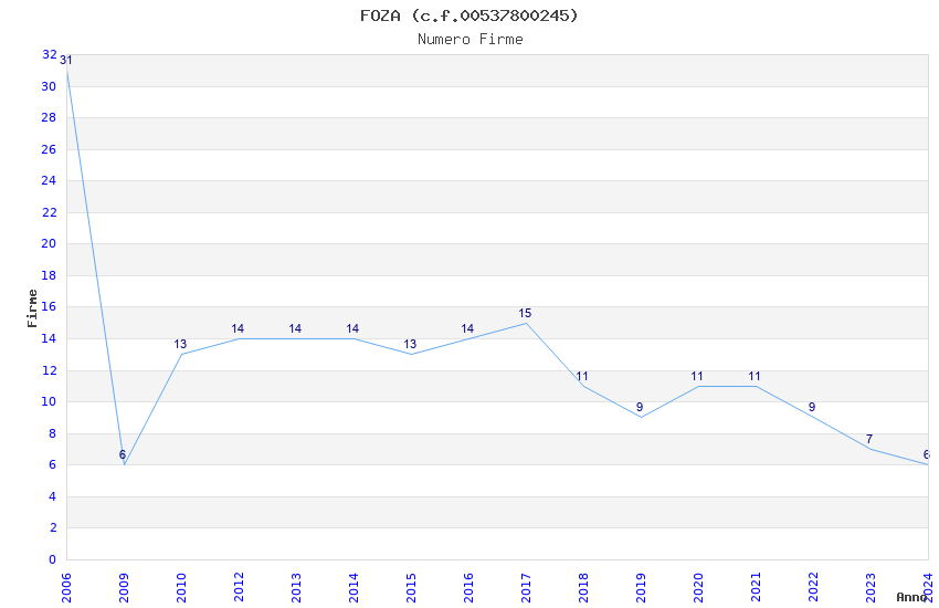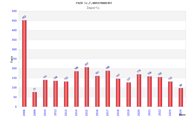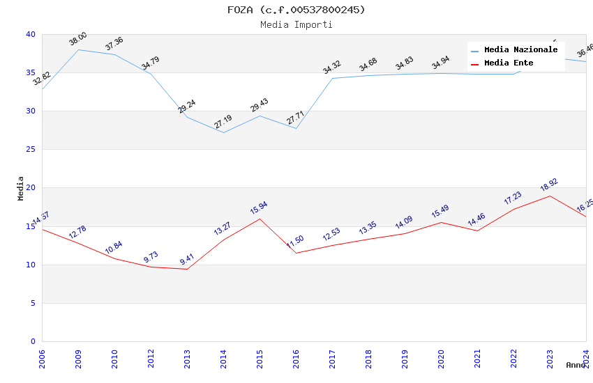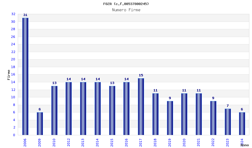 | Anno | Firme | Importi | Media | Naz. | Reg. | Prov. | Comu. |
