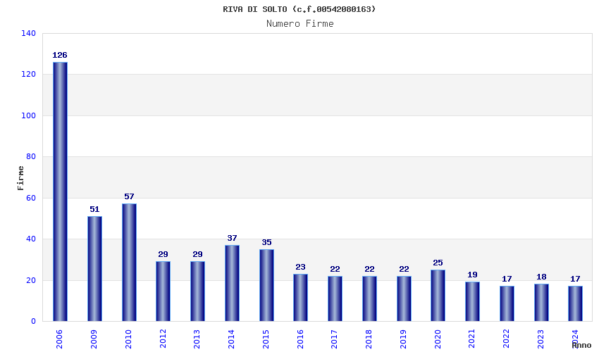 | Anno | Firme | Importi | Media | Naz. | Reg. | Prov. | Comu. |