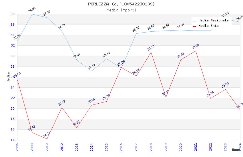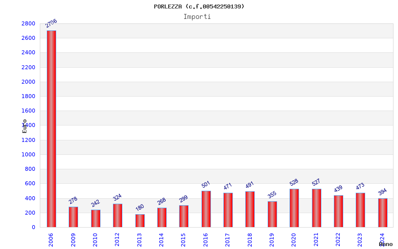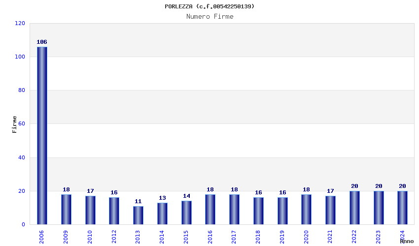 | Anno | Firme | Importi | Media | Naz. | Reg. | Prov. | Comu. |