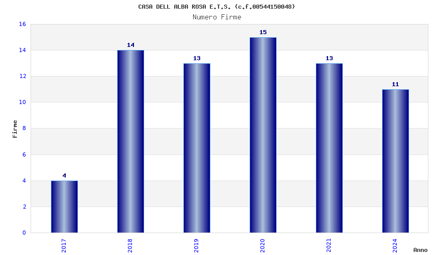 | Anno | Firme | Importi | Media | Naz. | Reg. | Prov. | Comu. |