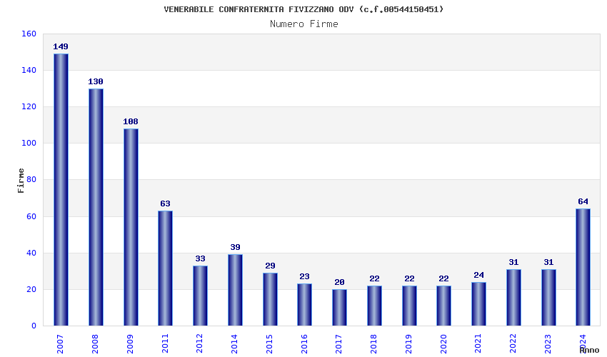 | Anno | Firme | Importi | Media | Naz. | Reg. | Prov. | Comu. |