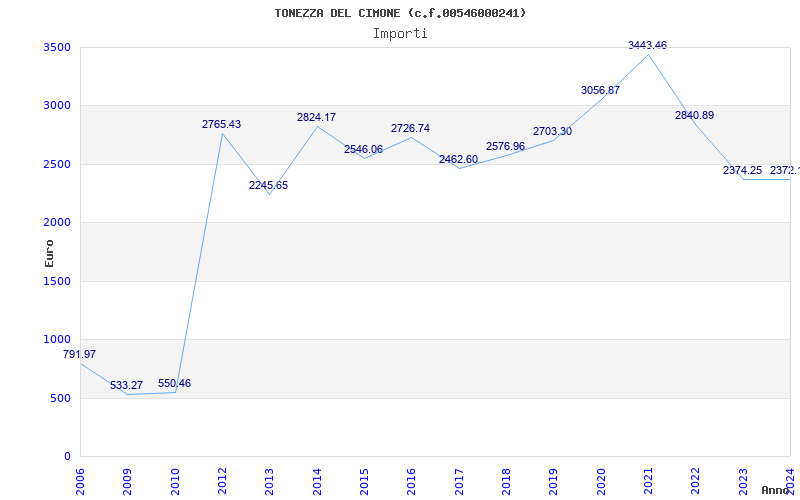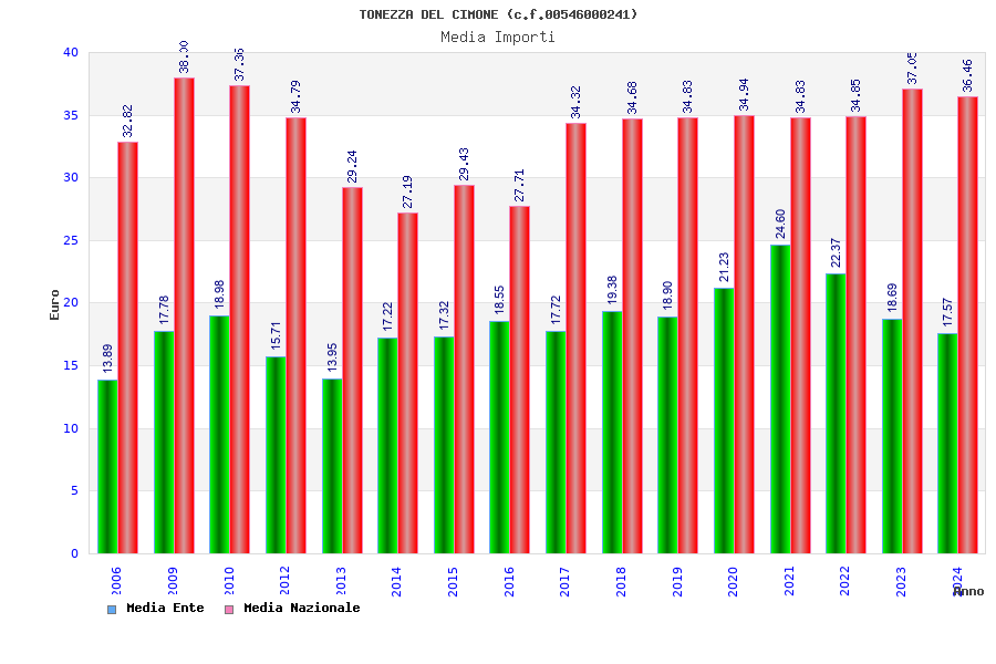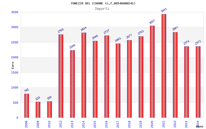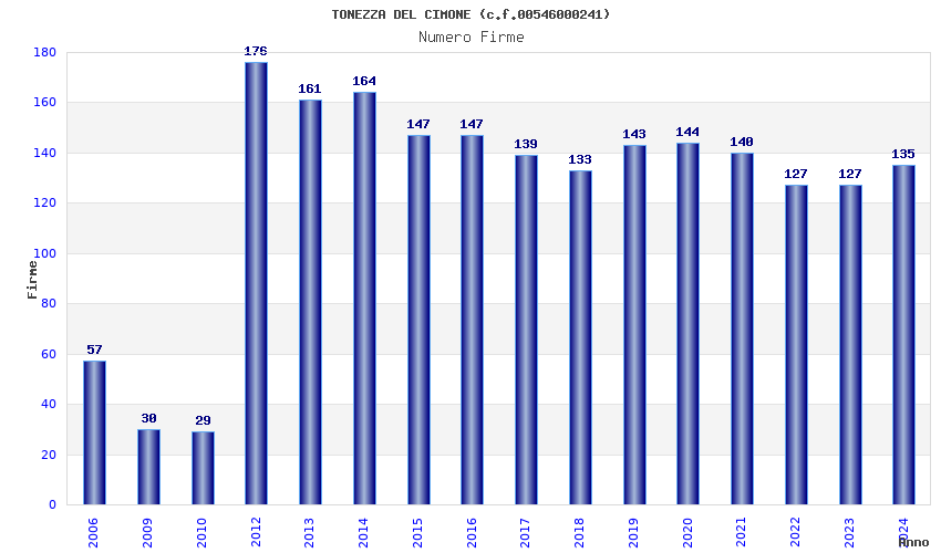 | Anno | Firme | Importi | Media | Naz. | Reg. | Prov. | Comu. |