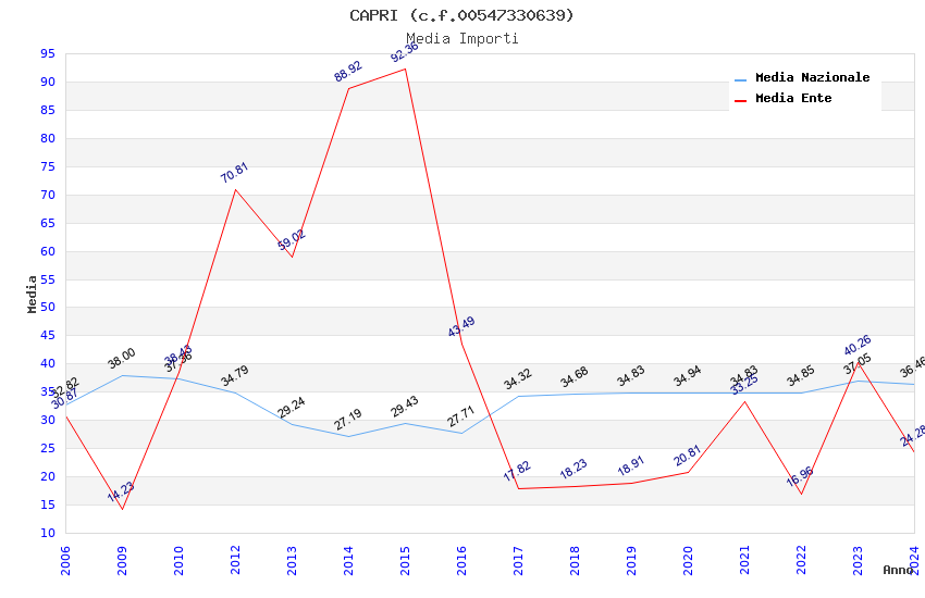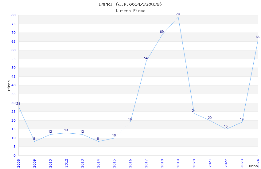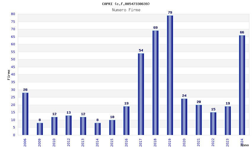 | Anno | Firme | Importi | Media | Naz. | Reg. | Prov. | Comu. |