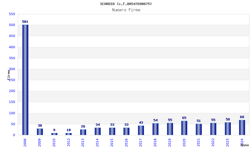 Anno Firme Importi Media Naz. Reg. Prov. Comu.