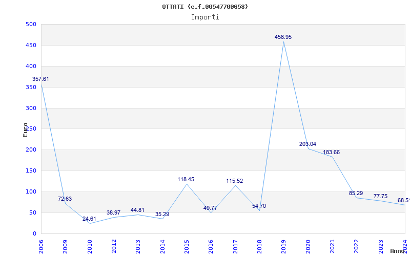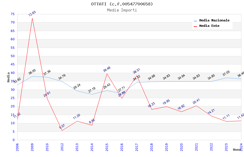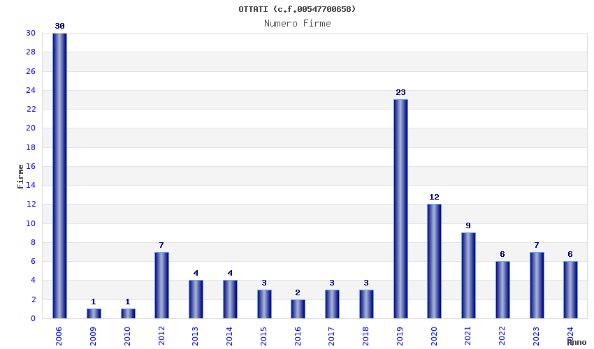 | Anno | Firme | Importi | Media | Naz. | Reg. | Prov. | Comu. |