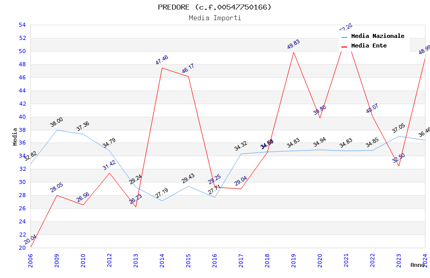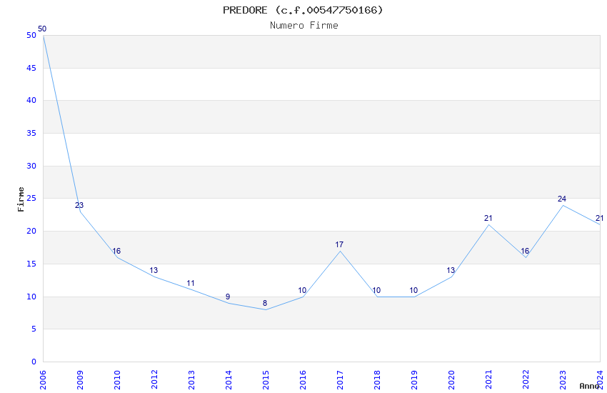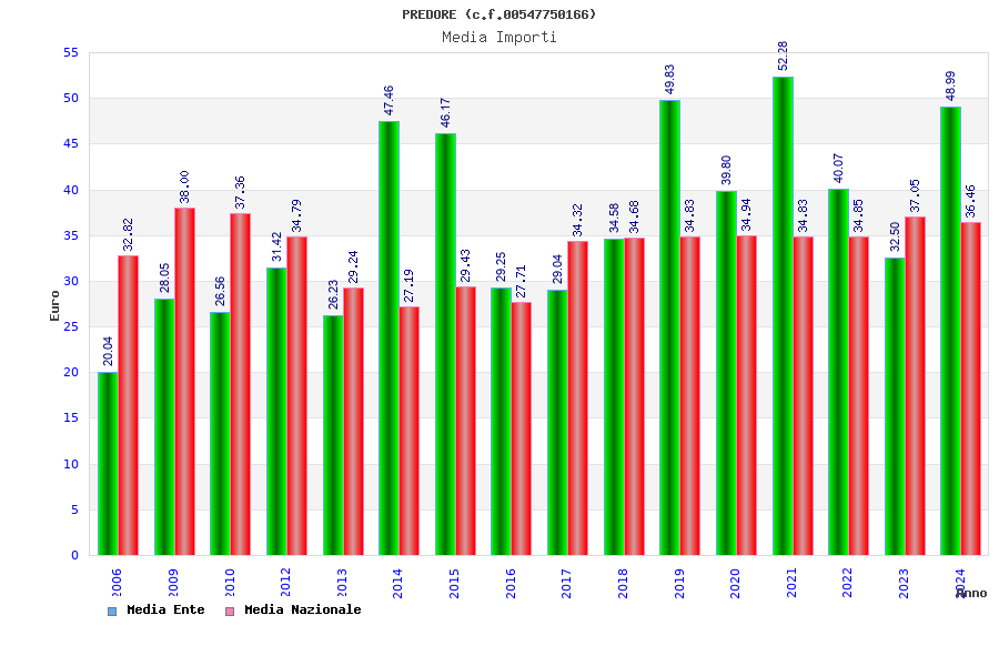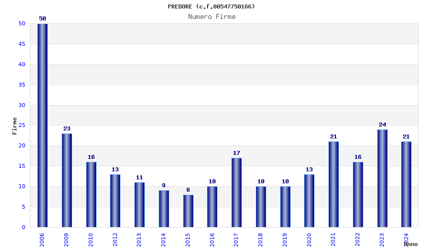 | Anno | Firme | Importi | Media | Naz. | Reg. | Prov. | Comu. |