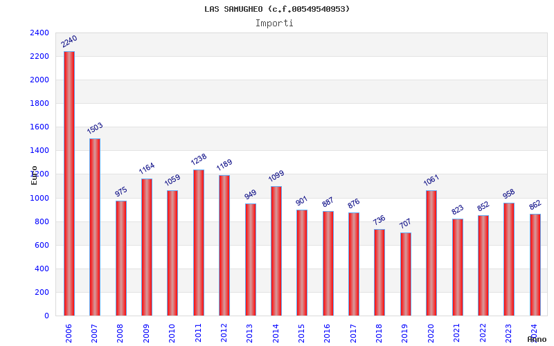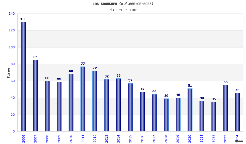 | Anno | Firme | Importi | Media | Naz. | Reg. | Prov. | Comu. |
